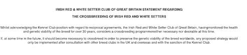 In fact the IRWS outcross initiative, supported by the Irish Kennel Membership, just isn’t an enormous leap. The Irish Setter and Irish Purple + White Setter have been all one and the identical breed till the Nineteen Seventies. However, nonetheless, it has met a whole lot of opposition inside the present neighborhood – see right here and right here.